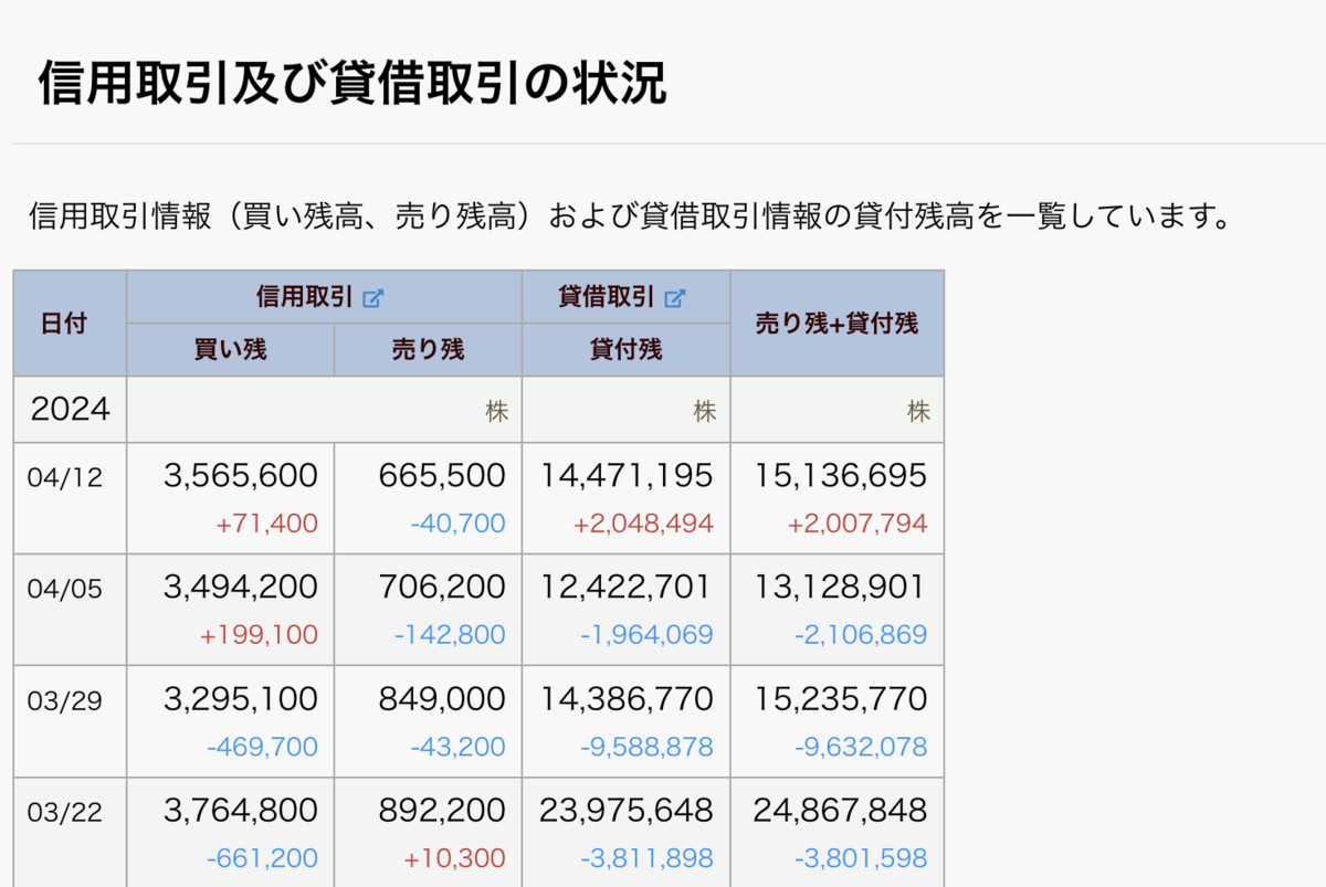 4/5時点だと、売りポジションの人が減少してますね。4/8 ~ 9にかけての上昇はJPモルガン証券の買い戻しだと思った方が良さそうですね。